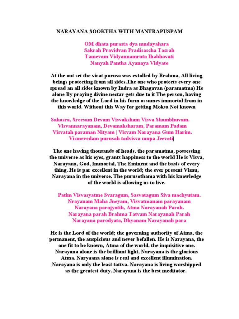 Narayana Suktha Mantrapushpam Hymn Pdf Devi Vishnu